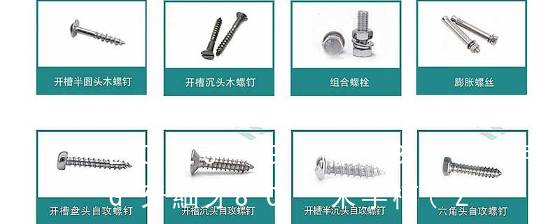 1.機螺釘 2.自攻螺釘 3.鉆尾螺釘 4.墻板釘 5.纖維板釘 6.木螺釘7.六角木螺釘 8.不脫出螺釘 9.組合螺釘 10.微型螺釘 11.家具螺釘 12.電子螺釘頭型:1.六角頭(hexagon head) 2.六角頭法蘭面(hexagon head with flange) 3.